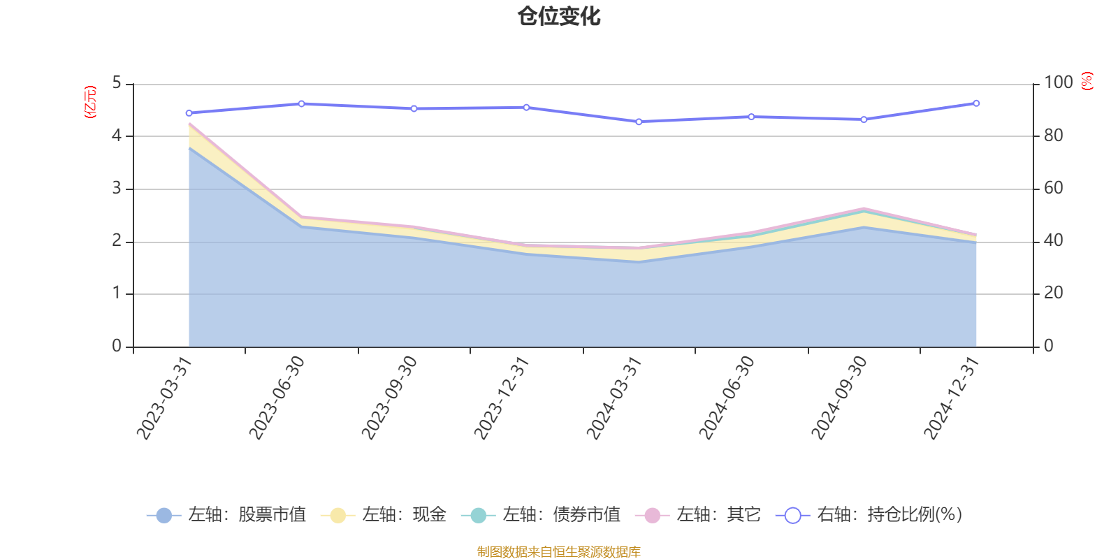 据定期报告数据统计,成立以来平均股票仓位为89.39%,同类平均为84.96%。2024年末基金达到92.61%的最高仓位,2024年一季度末最低,为85.58%。